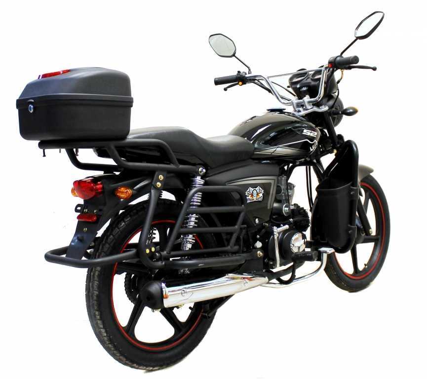 Для того чтобы обеспечить водителю безопасную поездку, не лишенную комфорта, в мопеде имеются удобное пространство для кофр и боковые дуги, материалом изготовления которым послужили качественные металлические трубы – благодаря им боковые дуги не деформируются даже в случае аварии или падения.