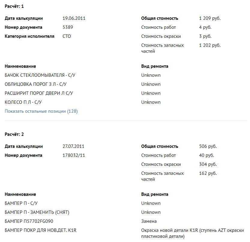 У машины нет диагностической карты, поэтому доступен только аналитический пробег. Но у машины было два расчета на ремонтные работы, то есть она была битая и нуждалась в ремонте.