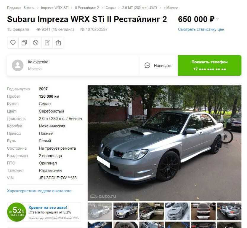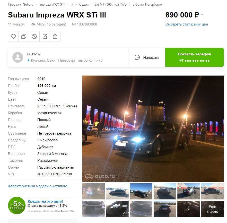 За Impreza WRX STI 650 тысяч — цена чуть ниже рыночной. Следует предположить, что автомобиль попал в аварию или что пробег был искажен.