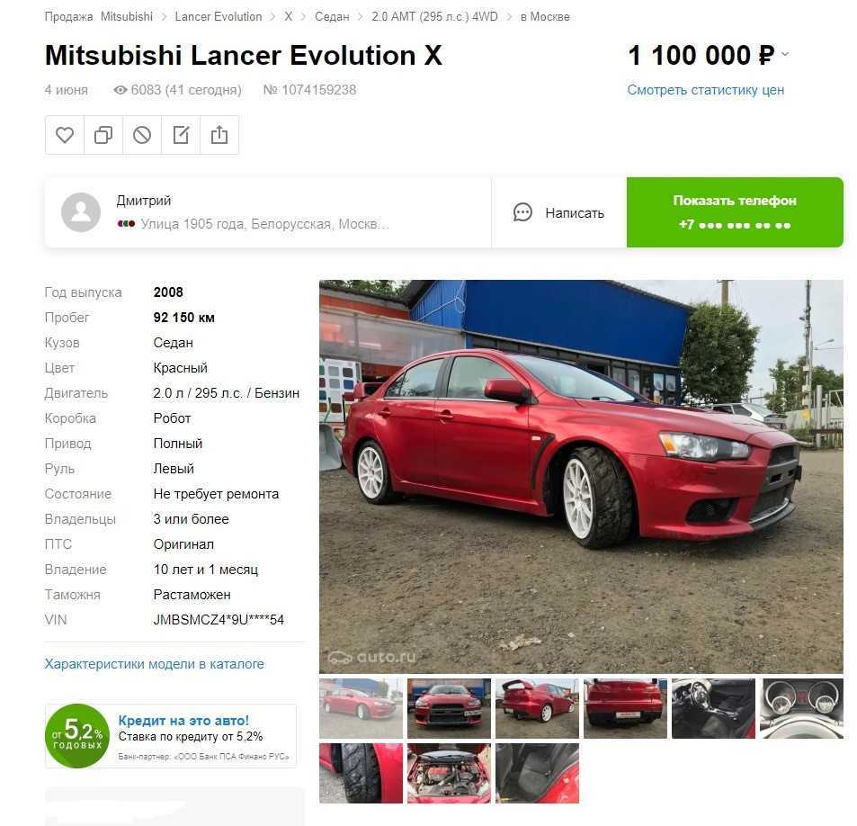 Владельцы Evo любят прятать номер на фото в объявлении во время продажи, и мы смогли найти только один автомобиль, готовый к проверке.