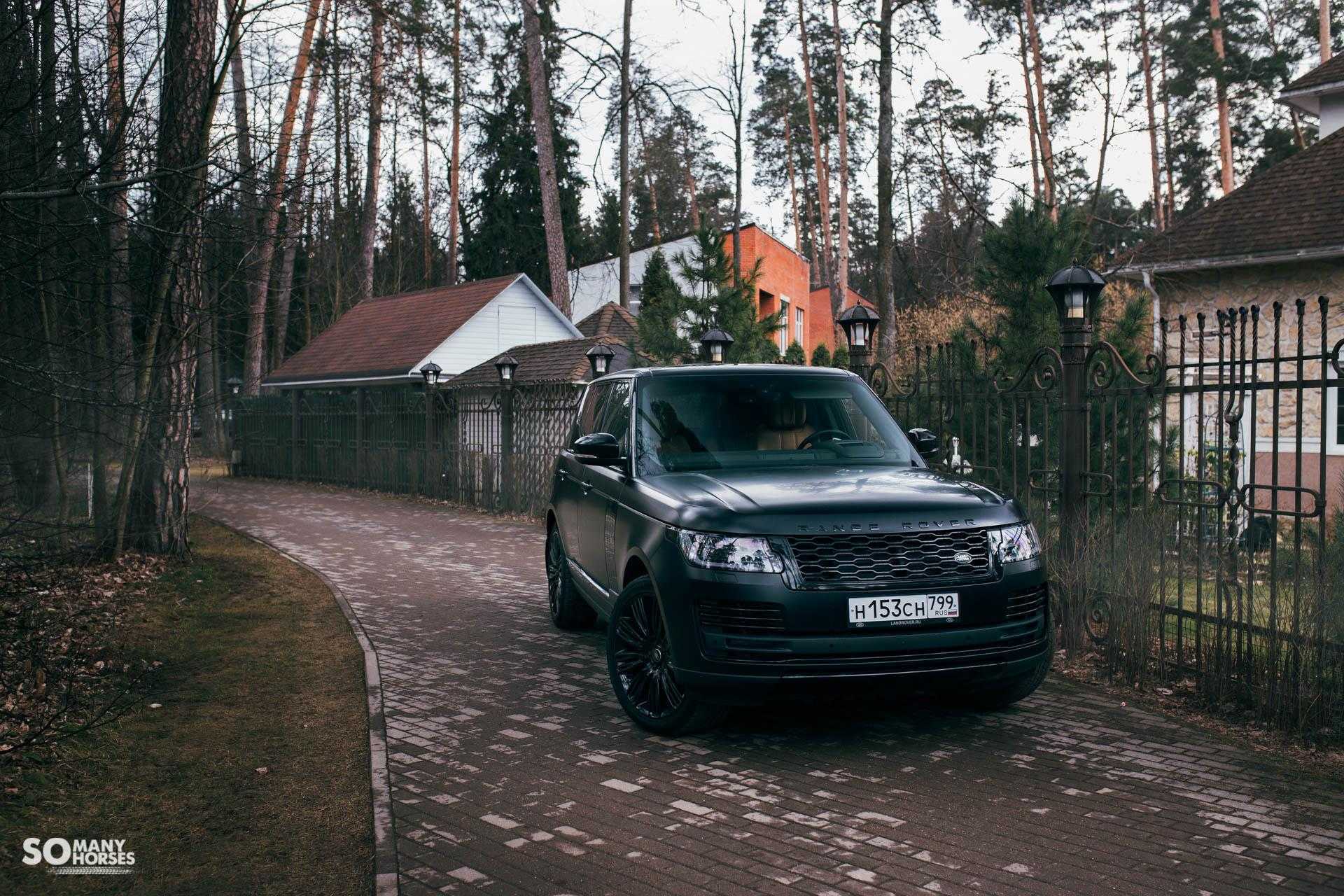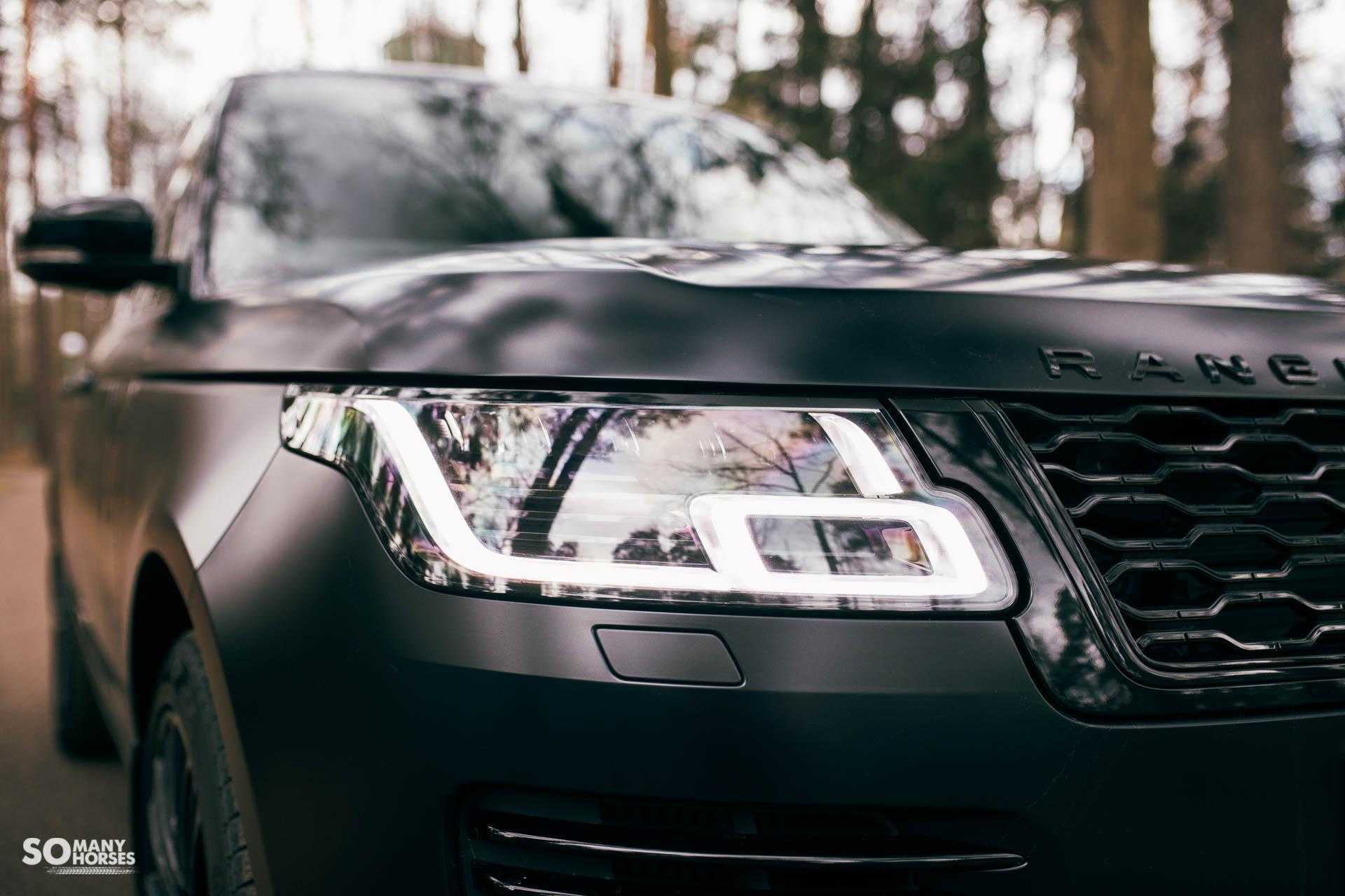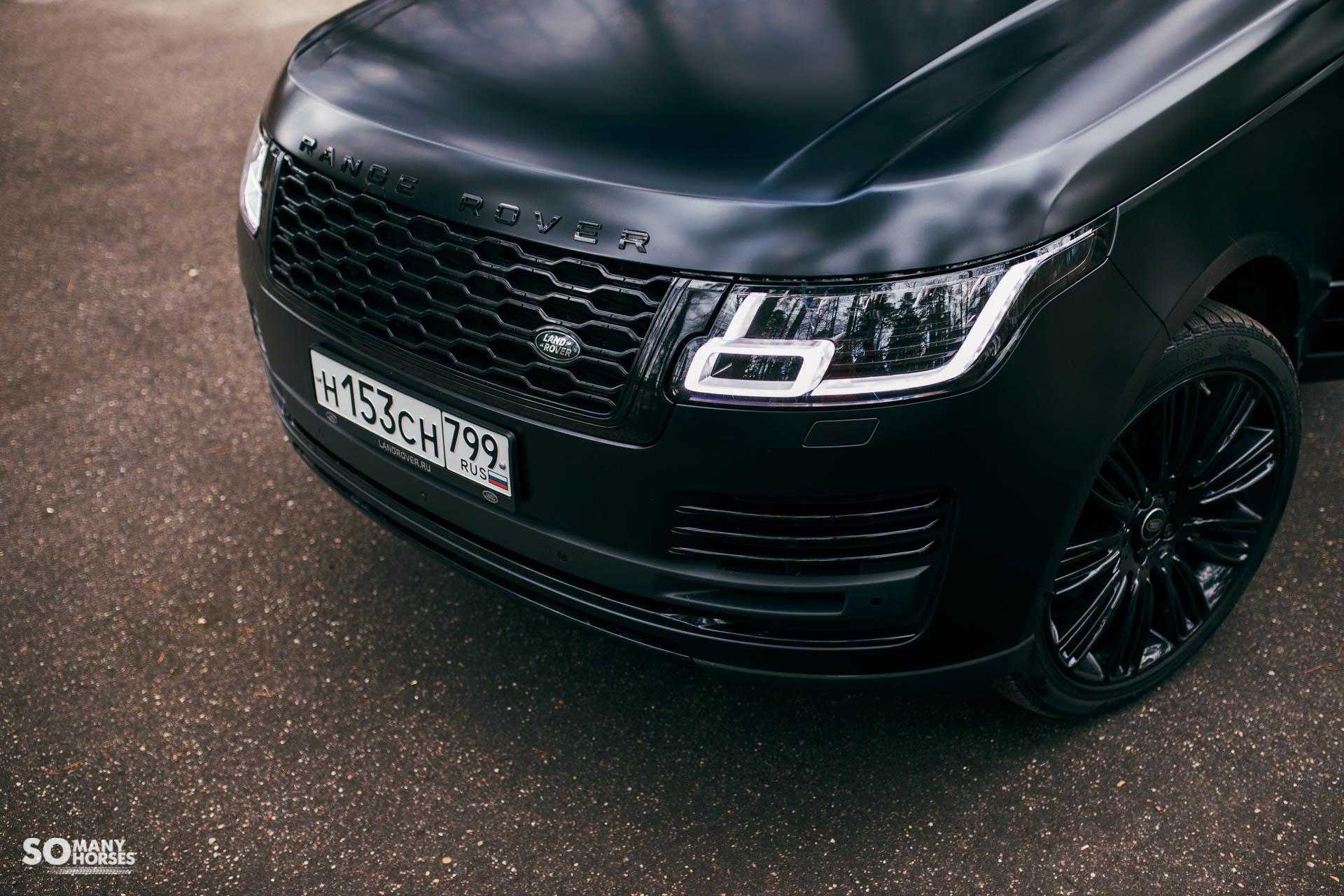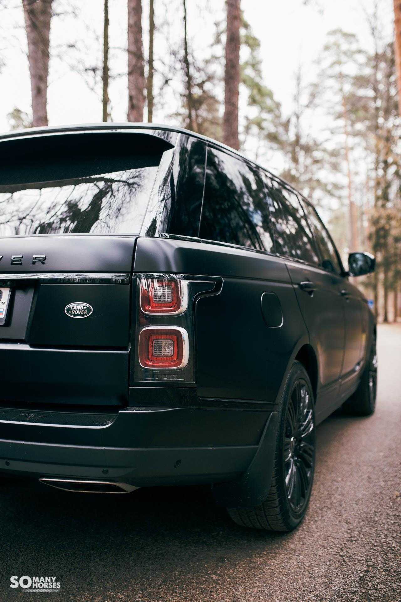 Кстати, его обновленный капот теперь физически и визуально длиннее, благодаря чему обзор водителя стал намного лучше. Вообще, мне всегда нравились Range Rover, за то, что они выглядят очень агрессивно, брутально и, не поддаваясь тенденциям, сохраняют традиционный внешний облик, лишь слегка дорабатывая его современными элементами и деталями. Здесь современный облик подчеркивает передняя решетка радиатора, а также передний бампер с расширенными вентиляционными отверстиями. И, конечно, огромные диски, в нашем случае — 22-дюймовые легкосплавные колеса с 9 раздельными спицами с отделкой Gloss Black — Style 9012. Смотрятся очень круто и подчеркивают брутальность машины.