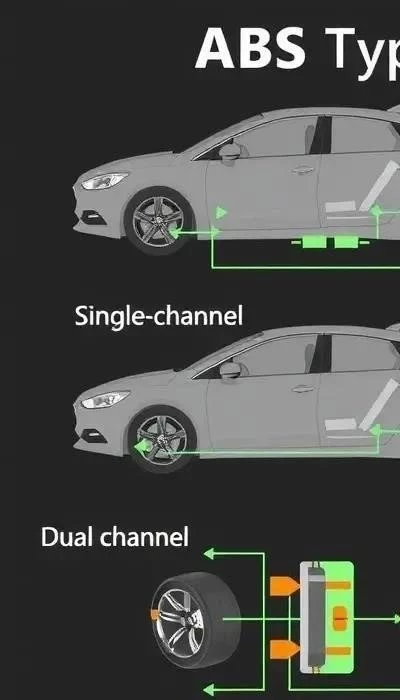 - Одноканальная ABS: Управляет торможением только задней оси. Наименее эффективная система, встречается в основном на старых автомобилях.