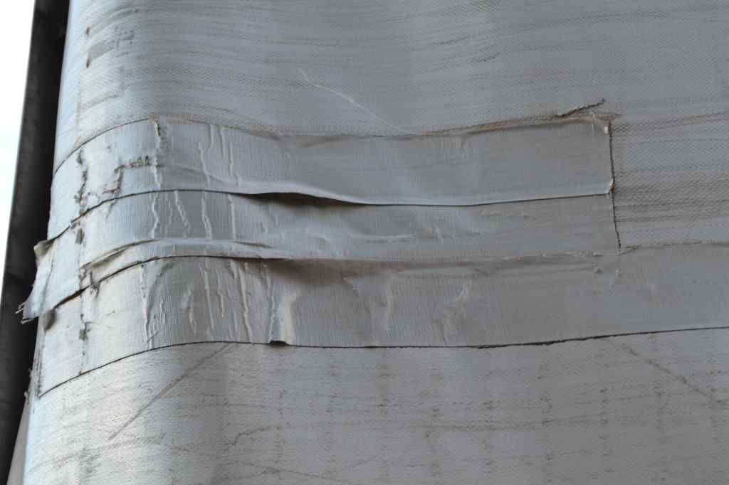 - Средний (экстренный) ремонт – замена небольших частей тента с использованием подходящих по цвету и качеству кусочков материала.