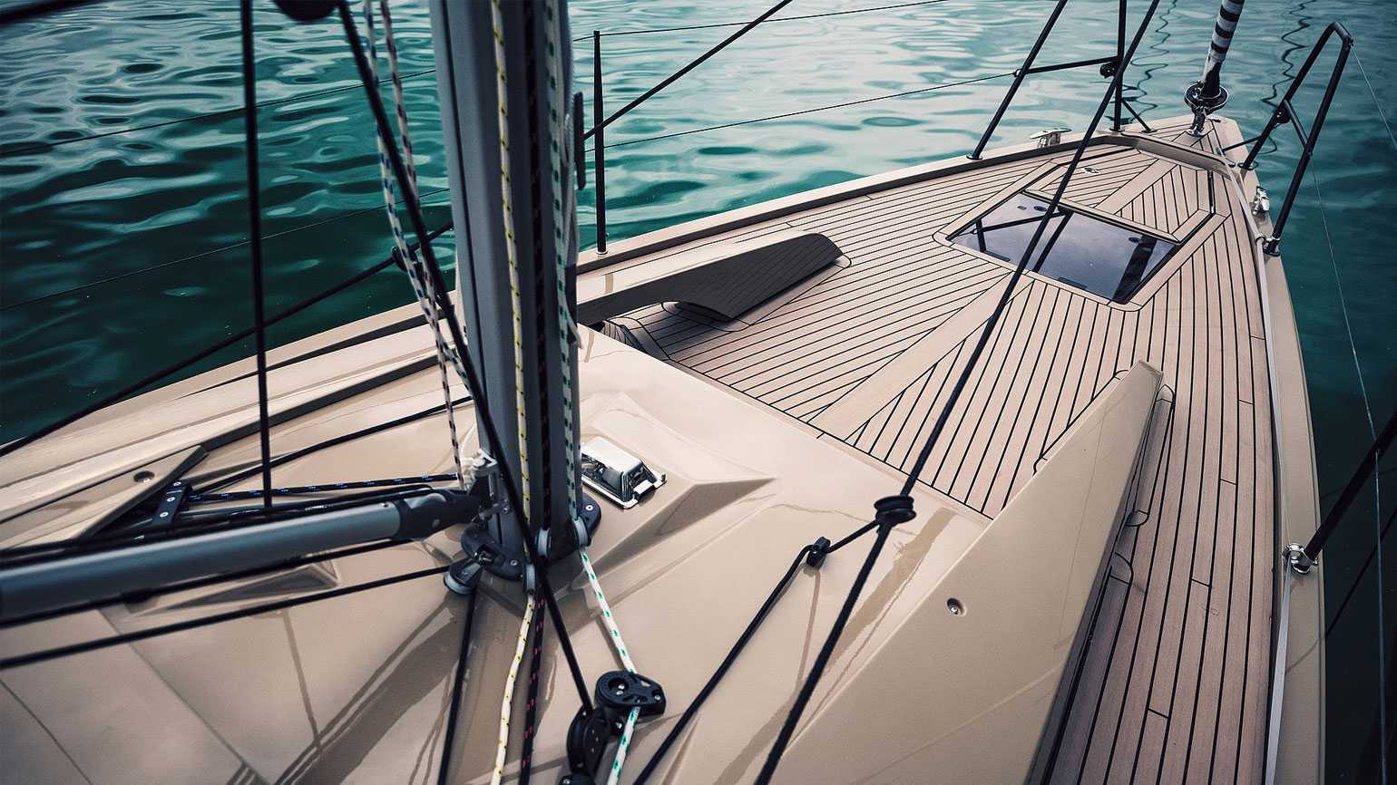 Революционный ход проектировщиков — в 10-метровой лодке значительно увеличена площадь палубы: площадка для загорания нависает над носом лодки. Кабина перемещена в носовую часть — благодаря этому освободилось больше места в кокпите, появилась выдвижная платформа для купания. Мотор разместили на корме — это добавило больше места под палубой.