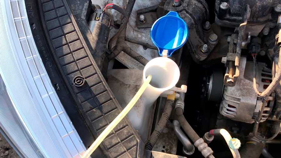 Если же решили взять концентрат, внимательно изучите инструкцию. Слейте из бачка старую жидкость и смешайте в отдельной ёмкости новый раствор незамерзайки. Распространённая ошибка — это добавление концентрата в бачок, где находится старая вода. В таком случае раствор получается неоднородным. Это часто ведёт к замерзанию распылителей.