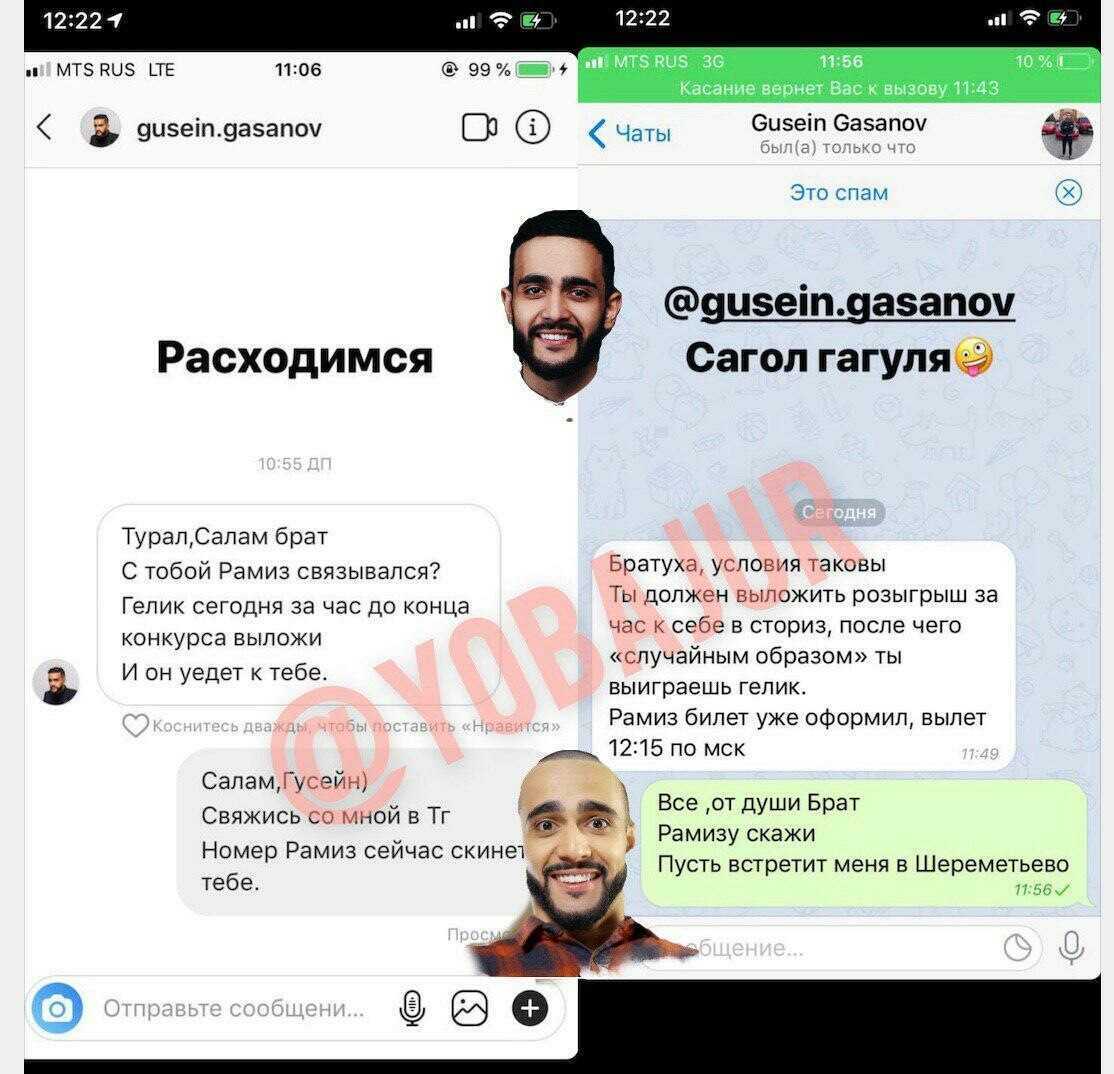 Гасанов назвал мошенниками людей, которые публикуют фейковые переписки, и заявил, что проведёт розыгрыш честно в прямом эфире.