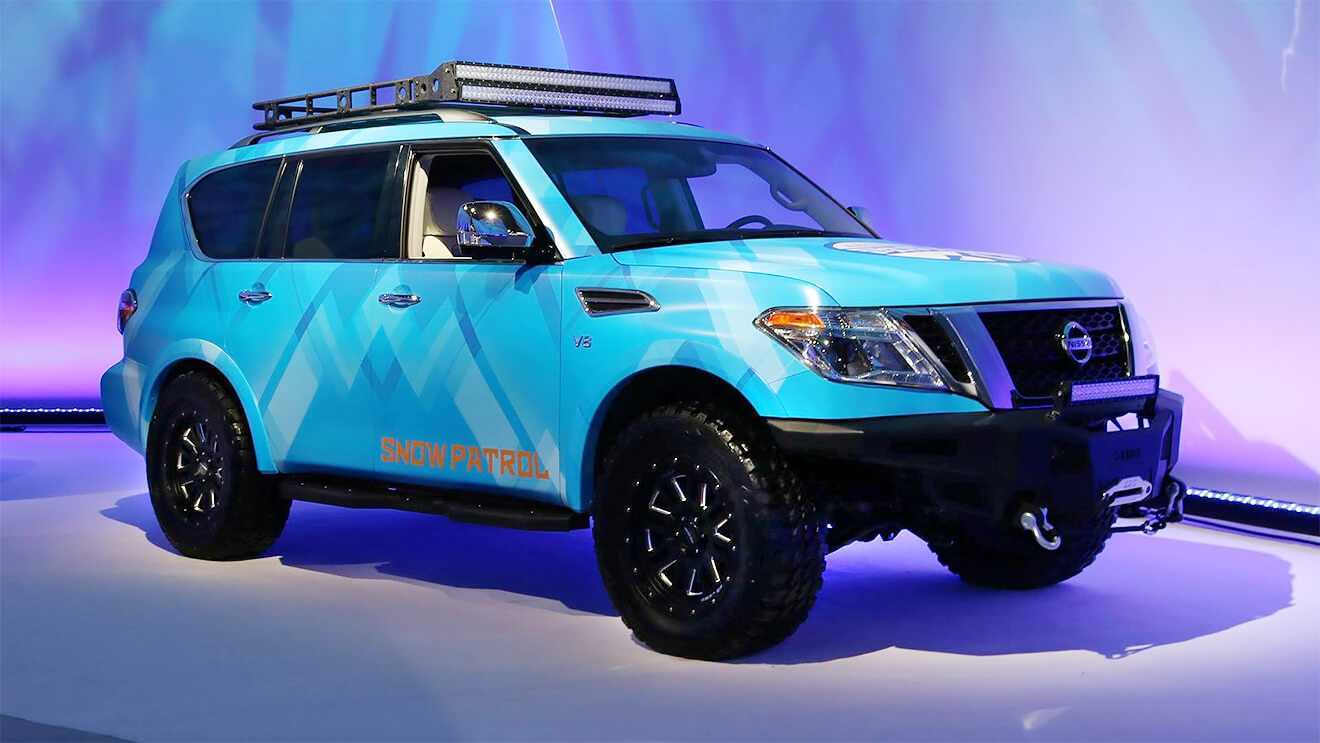 Еще одна специальная версия классической модели от Ниссан — Armada Snow Patrol. Здесь колеса остались на месте, но разработчики утверждают, что проходимость у внедорожника исключительно высокая – проехать он сможет даже по горнолыжному склону. Для этого предусмотрены огромные колесные диски (20 дюймов) и особые шины (35 дюймов). В передней части авто размещена лебедка и силовой бампер. Клиренс в сравнении с исходной версией увеличен. Установлена более мощная светотехника.