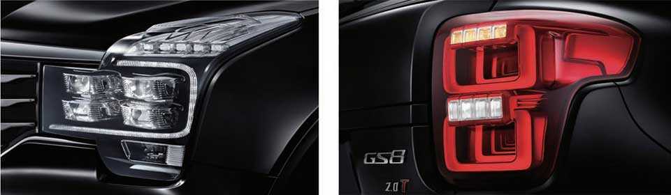 Во внешнем облике GAC GS8 преобладают прямоугольные формы, особенно это заметно по задней части кузова, также можно отметить почти плоскую крышу.