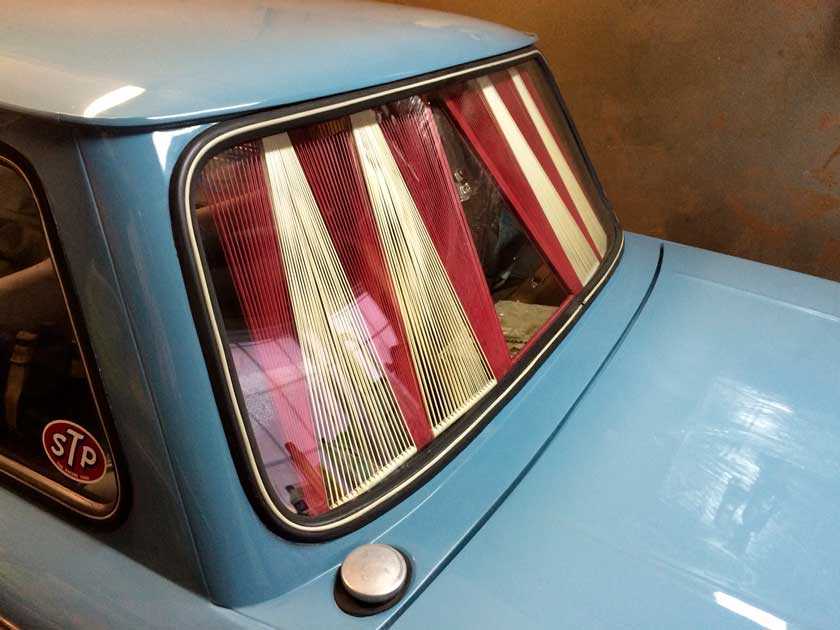 Когда всё было сделано, каркас безопасности показался слишком тонким. Решил сделать его толще с помощью чехла: обернул трубы поролоном и обшил виниловой кожей в цвет кузова. Машина стала выглядеть более гармонично.