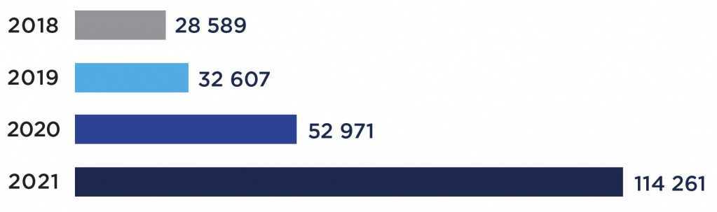 Рис. 17. Продажи китайских машин с 2018 по 2021 гг.