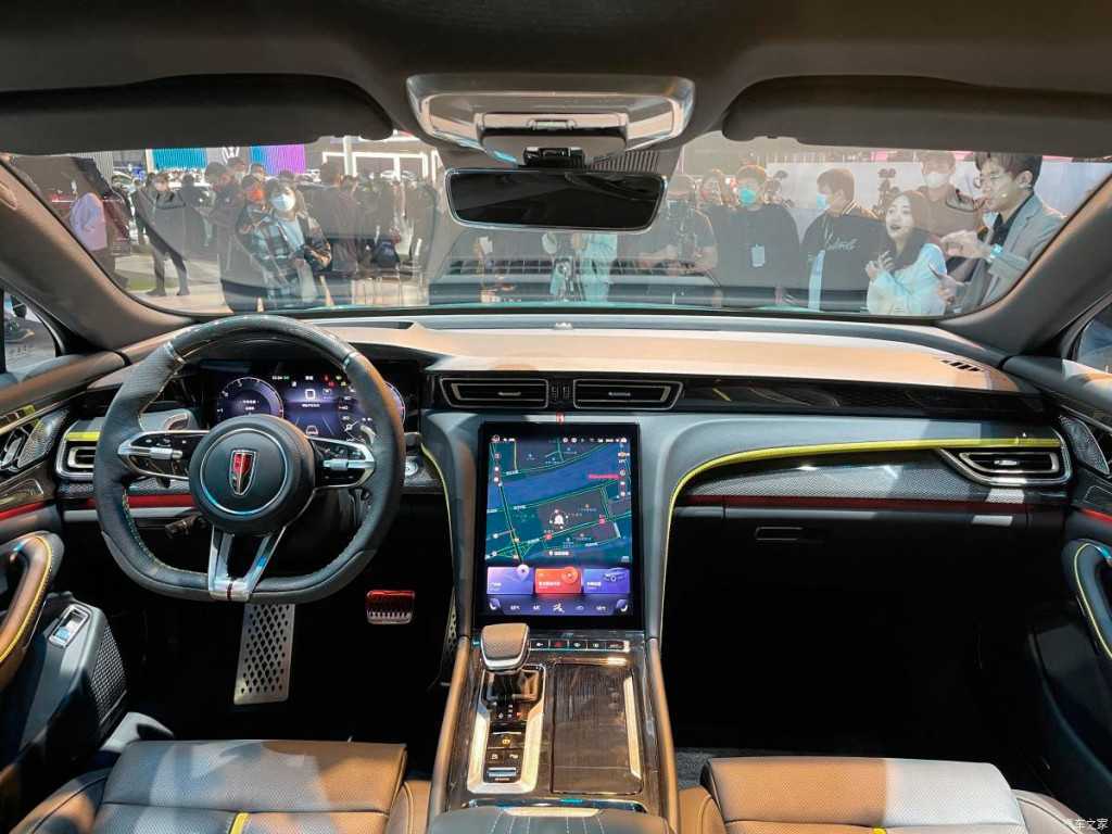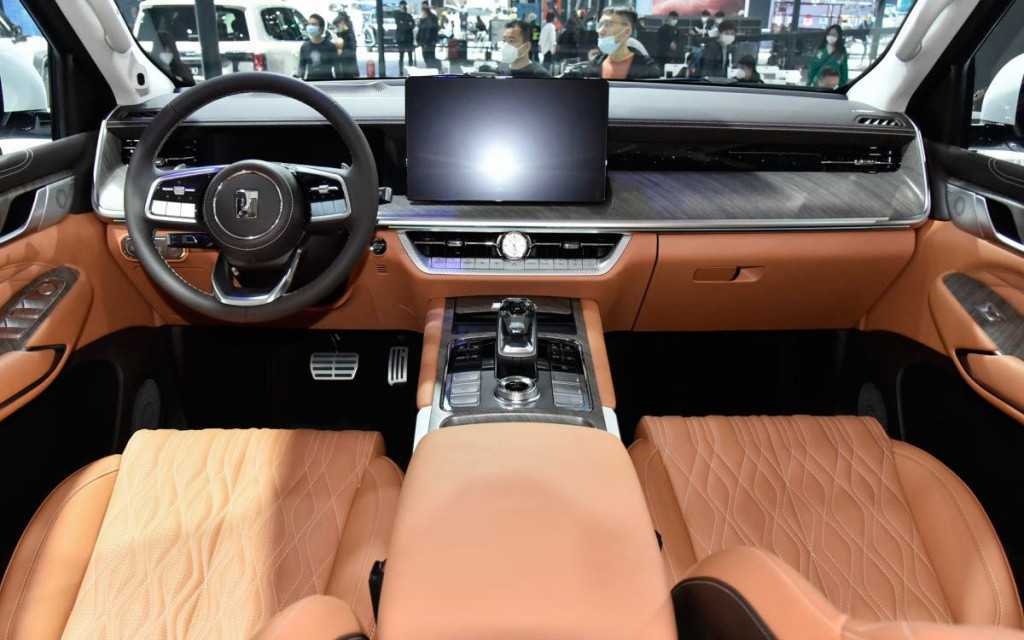 В салоне располагается горизонтально ориентированная центральная консоль, на которой предусматриваются все необходимые органы управления и большой сенсорный экран для вывода актуальной информации о состоянии автомобиля.