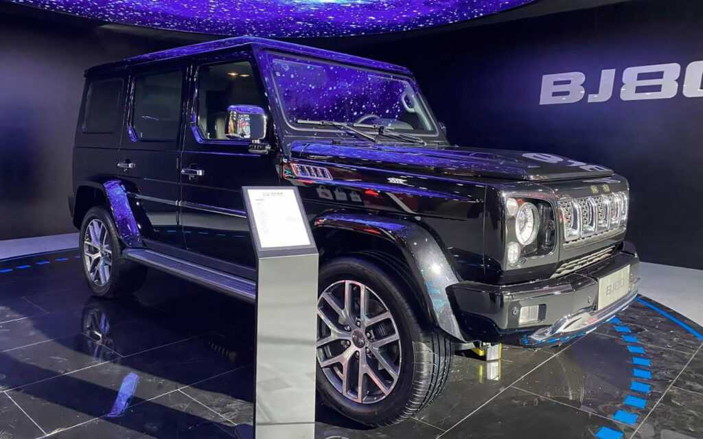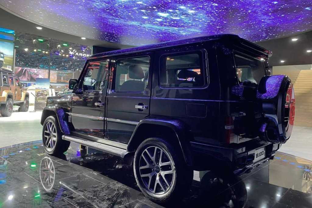 Внешне Beijing BJ80 сильно напоминает Mercedes-Benz G-Class. Машина получила квадратную форму кузова, хромированную решетку радиатора с пятью секциями, круглые фары и агрессивные бамперы.