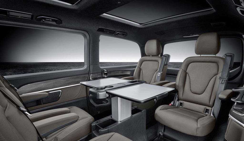 Салон комфортабельный, стильный. Приборное табло располагается на экране бортового компьютера. На центральной панели можно увидеть дисплей мультимедиа 7 дюймов. Интерьер современный, стильный, материалы салона добротные. Микроавтобус рассчитан на 8 мест, то есть его вместимость не максимальная. Зато багажник по-настоящему королевский.
