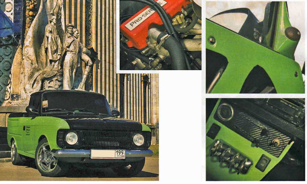 Это оказалось не так то и просто, ведь объем кабины у пикапа невелик. Однако и эта задача была успешно выполнена. Хотя спору нет, в кузове ИЖ «комби» или » Москвич-2141″ выбранные акустические компоненты, безусловно, заиграли бы иначе. Но вряд ли бы внутри больших по объему кузовов удалось создать маленький, уютный мир в котором бы переплетались элементы настоящего — электростеклоподъемники и модные приборы и прошлого — родные ручки открывания дверей и оригинальное рулевое колесо. Его Дмитрий менять отказался наотрез, ведь оно дает возможность, находясь в настоящем прикоснуться к прошлому…
