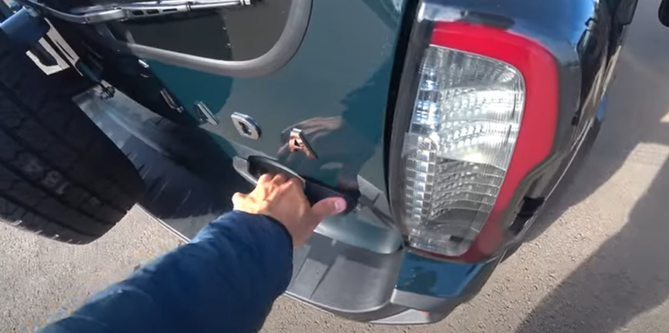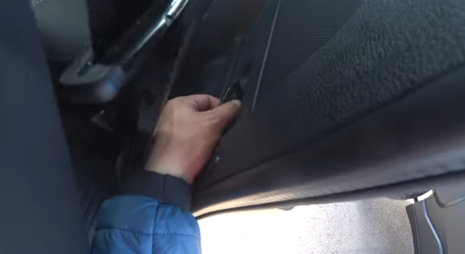 Ручка открытия двери задка у Нивы Легенды находится в непредсказуемом месте за спинкой водителя на боковой панели.