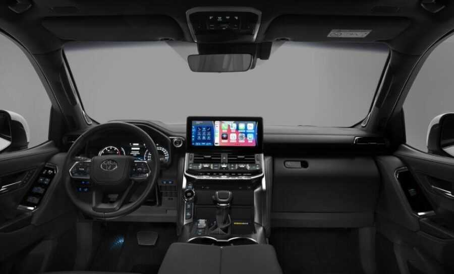 Новый Land Cruiser 300 лишился бензиновой восьмерки и на первом этапе был доступен с бензиновым двигателем V6 объемом 3,4 литра с двумя турбонагнетателями, развивающий 415 сил и 650 Нм крутящего момента. Пару составляет новый 10-ступенчатый «автомат», и горевать из-за ухода V8, явно не стоит.