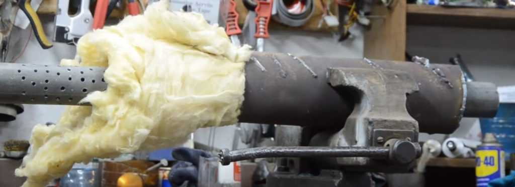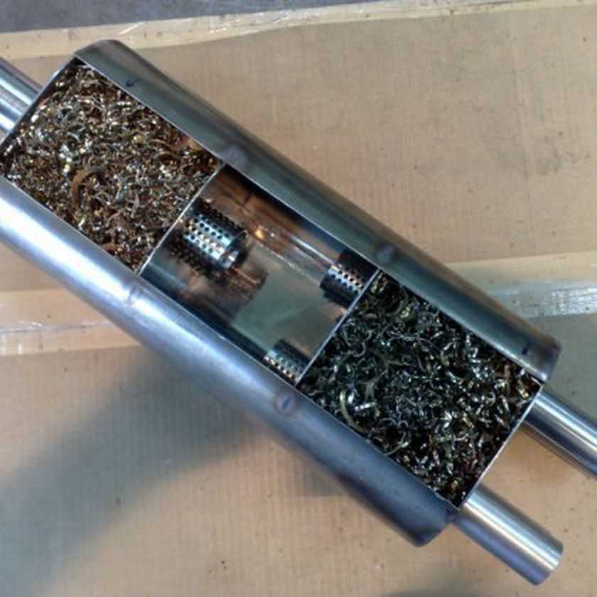 Все свободное пространство внутри глушителя плотно заполняем выбранным наполнителем.