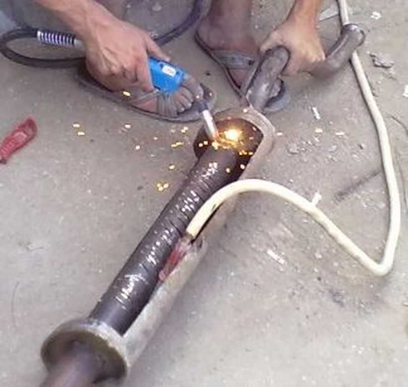 Согласуем и зачищаем места сварки, привариваем перфорированную трубу на штатное место.