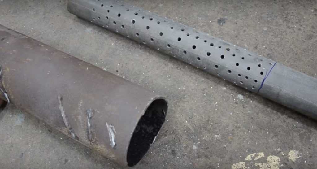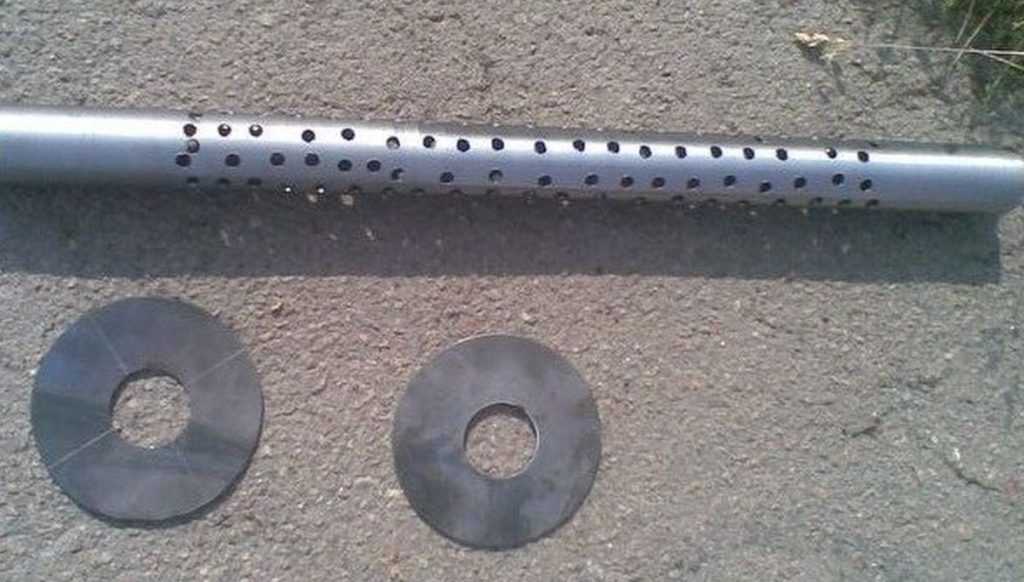 Перфорируем внутреннюю трубу доступным способом. Диаметр перфорированной трубы равен диаметру входного патрубка или больше до 30%.