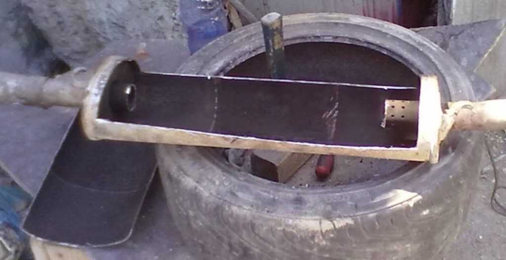 из старого глушителя вырезаем всё, что не нужно