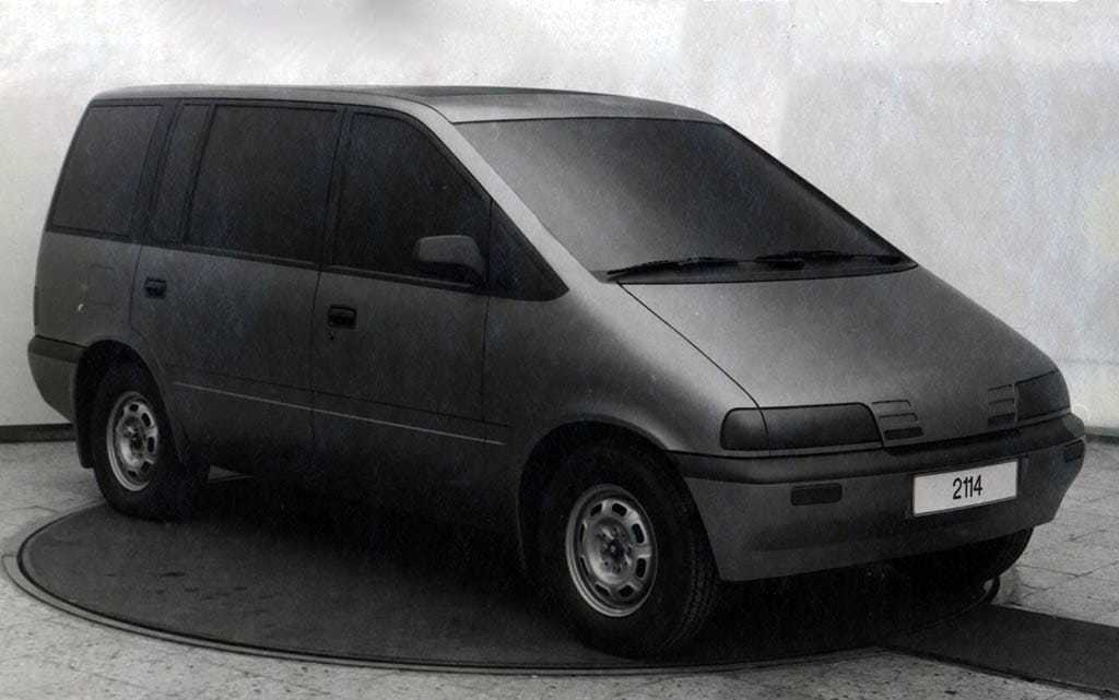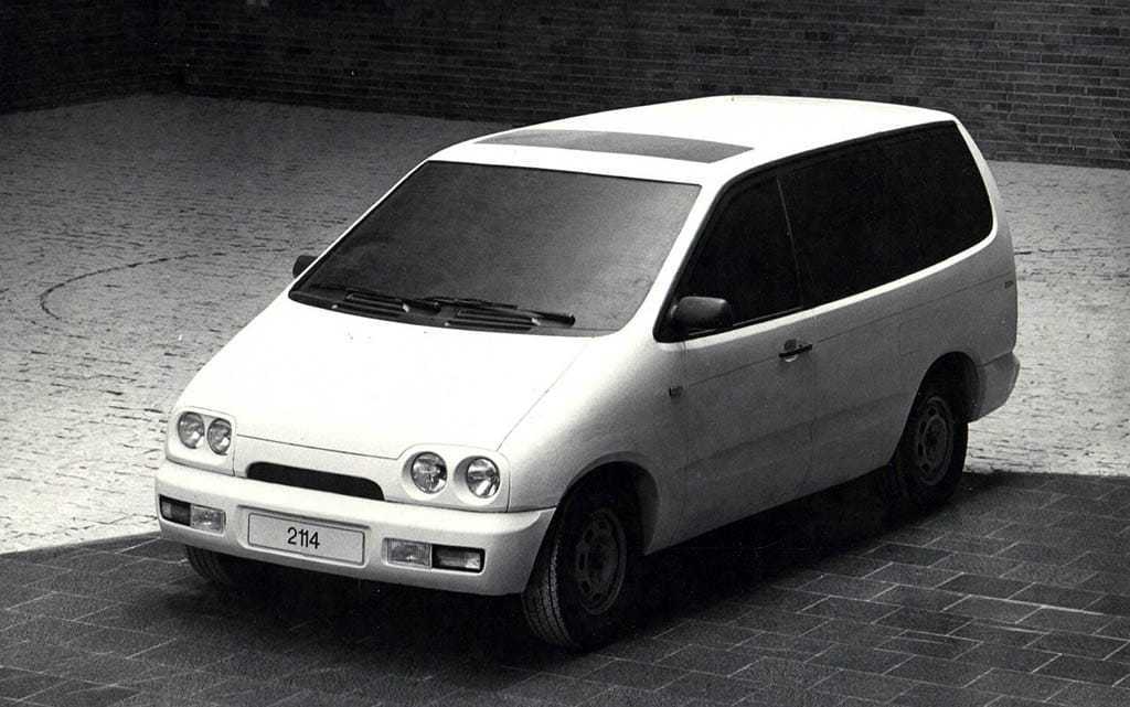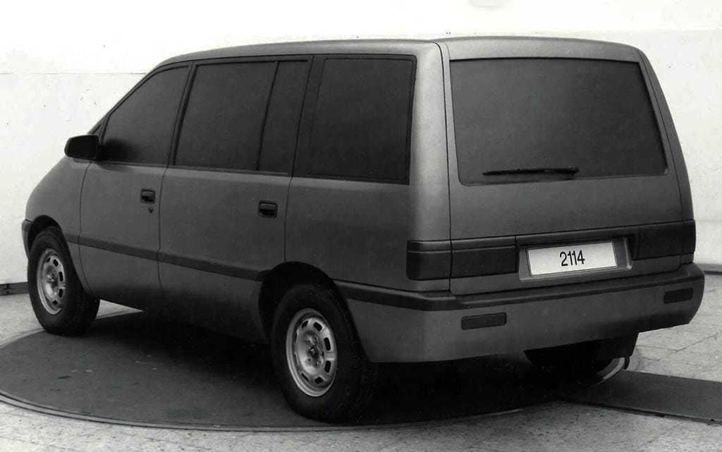 Тем временем проект оригинального минивэна, который лежал в стороне от основной ветки развития Нивы, потихоньку развивался. Если с агрегатной базой было все понятно, то экстерьер будущей машины сформировался не сразу. Внешний вид автомобиля, который к тому времени присвоили индекс ВАЗ-2114, разрабатывали несколько художников, но в конечном итоге в работу приняли вариант Олега Шапкина. В его проекте перспективный однообъемник получил кузов с высоким силуэтом, большой площадью остекления и прямоугольными фарами. Сзади машина имела классическую подъемную дверь и горизонтальные фонари. Облик ВАЗ-2114 получился подчеркнуто строгим, без ярко выраженных дизайнерских изысков.