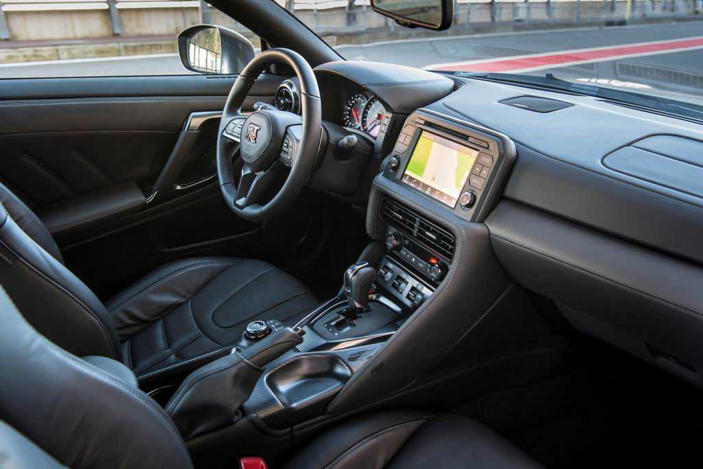 Модель GTR R35 отличается высоким уровнем комфорта, интерьер автомобиля обустроен по самой последней дизайнерской моде. Благодаря длинной колесной базе и коротким свесам салон получился достаточно просторным. Все сиденья оборудованы множеством регулировок и могут трансформироваться в бесчисленное число позиций. Приборная панель подчеркнуто крупная, широкая и расположена непривычно низко. Это дает возможность полного обзора всех датчиков и контролеров.