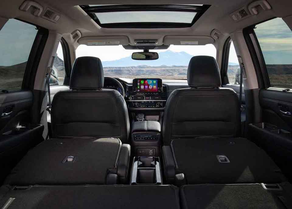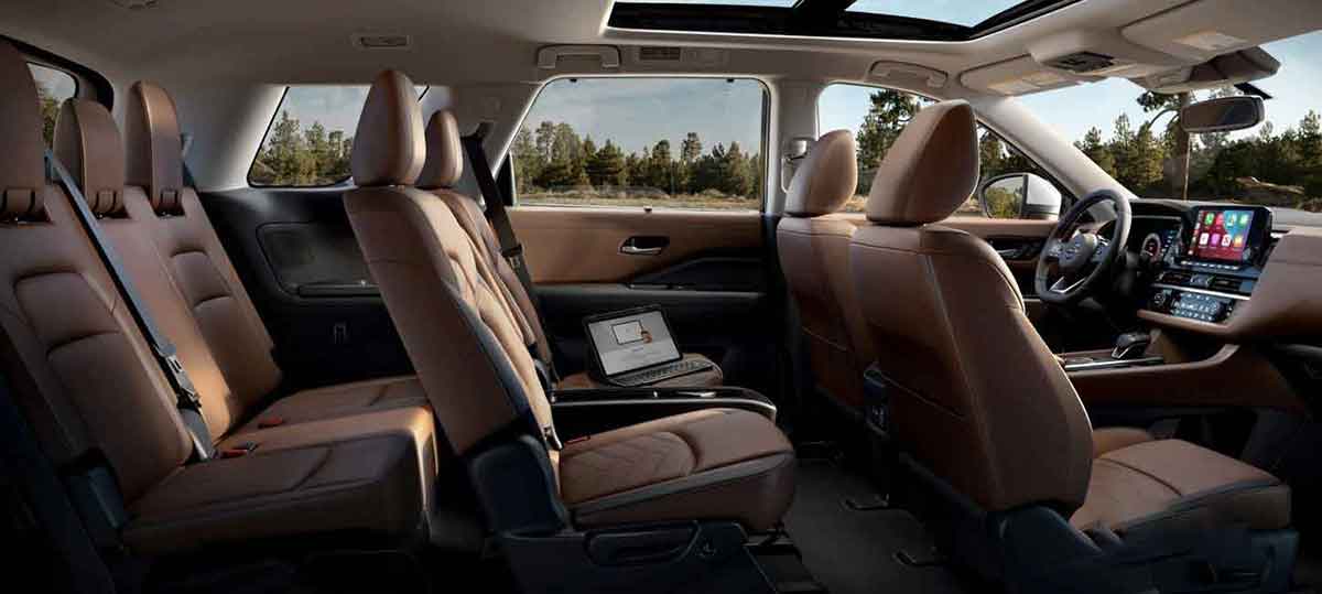 Вне зависимости от уровня оснащения все «пятые» Патфайндеры получают трехзонный климат-контроль, трехрядную компоновку салона, полностью светодиодную оптику, включающую в себя головные фары, задние фонари, противотуманки, ДХО и дополнительный стоп-сигнал.