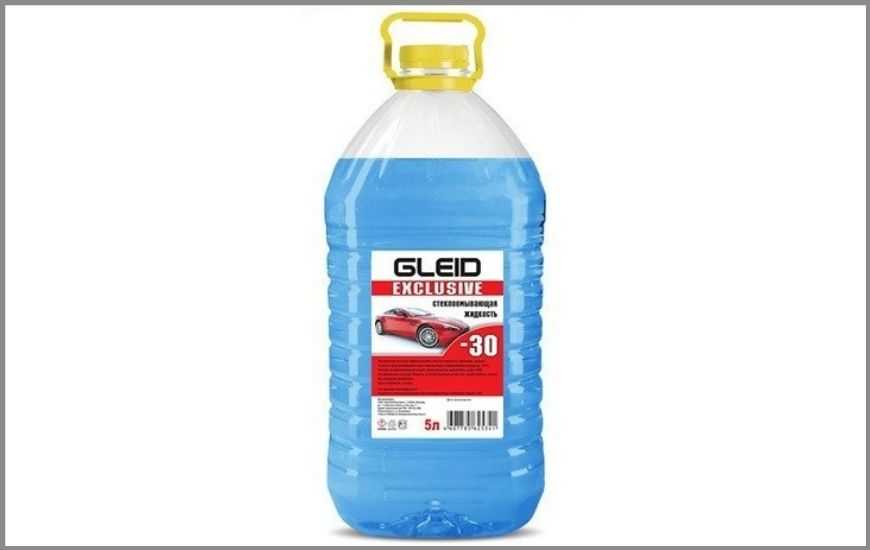 Готовая омывающая спиртовая жидкость зимняя от производителя Gleid поставляется в канистрах с лейкой. Покупатели отмечают нестабильное качество продукции, встречаются партии с температурой застывания около -10°С. В состав введены поверхностно-активные вещества и небольшая доза отдушки, при распылении запах в салоне не ощущается.