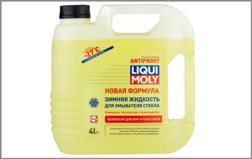 На вершине рейтинга готовых материалов оказалась Antifrost Scheiben-Frostschutz от немецкой фирмы Liqui Moly. Раствор имеет светло-желтый цвет, при распылении в салоне ощущается аромат дыни. Материал обеспечивает удаление следов копоти, реагентов и солевых растворов. Инертен по отношению к окрашенным или хромированным деталям кузова автомобиля. При использовании в системе очистки фар защищает рассеиватели от помутнения.