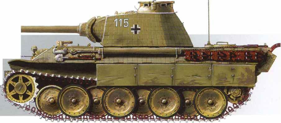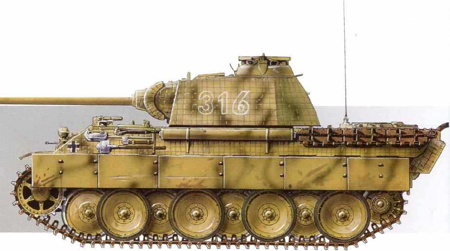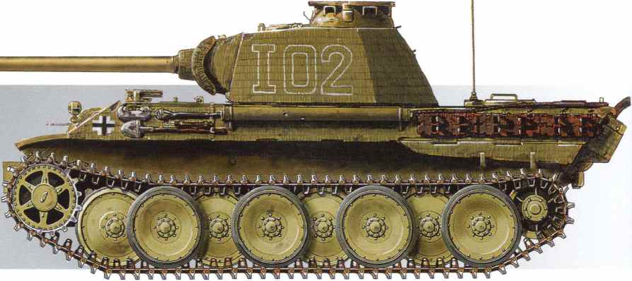 «Пантера» Аиз(. С из 9-го танкового полка СС (9-я танковая дивизия СС «Гогенштауфен»), Танки этого полка выделялись прикрепленными к башне траками.