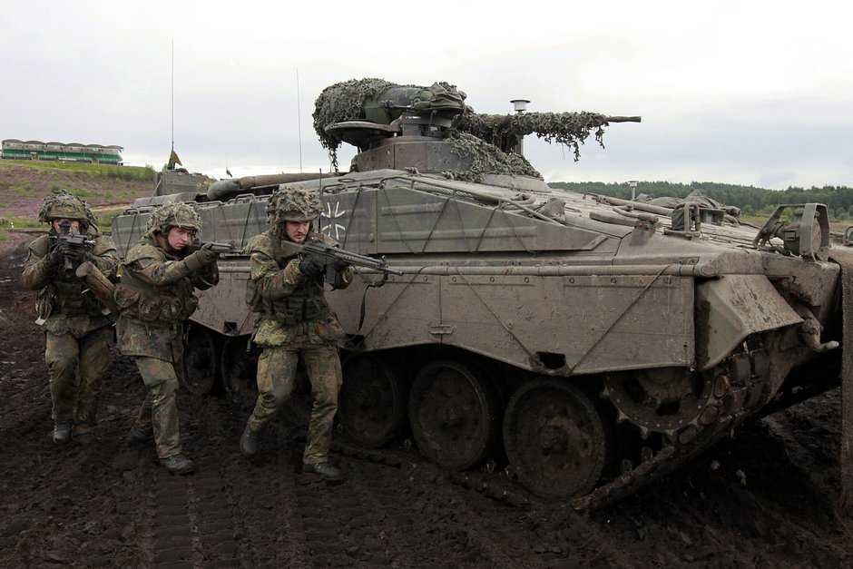 Солдаты бундесвера рядом с бронетранспортером «Мардер» во время военных учений