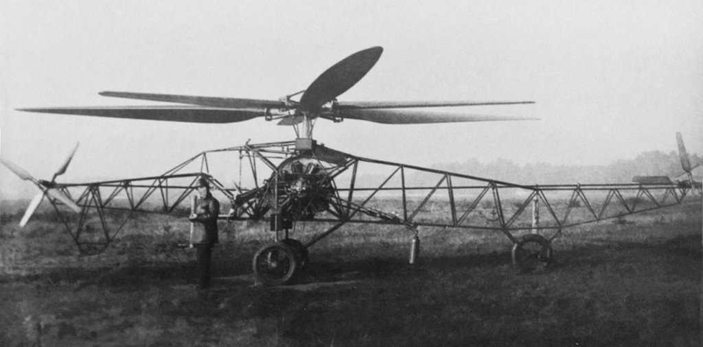 Еще в 1911 году Борис Юрьев предложил схему с одним несущим винтом. Чтобы машина не вращалась в противоположную от винта сторону, нужен был рулевой винт в хвосте.