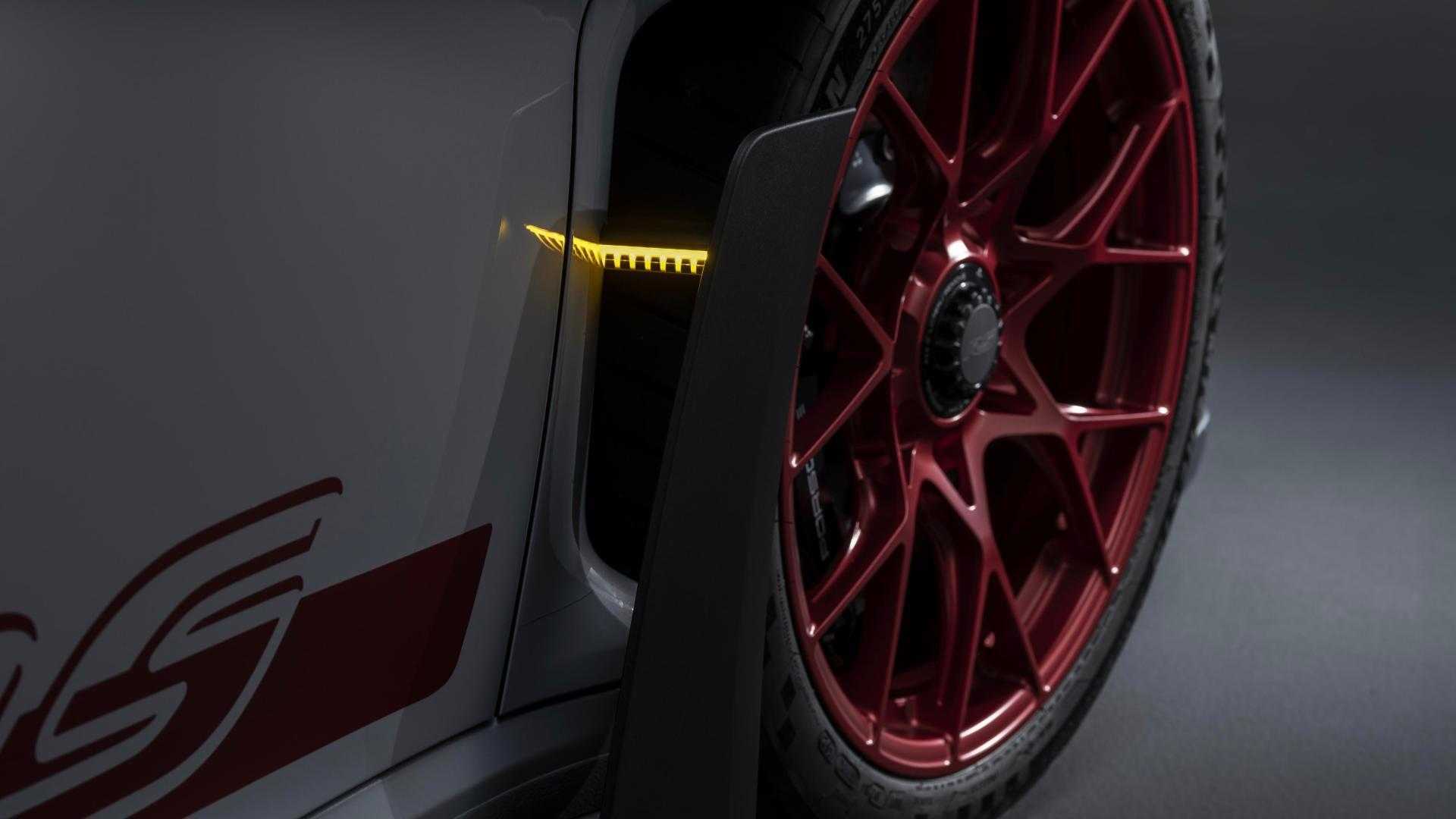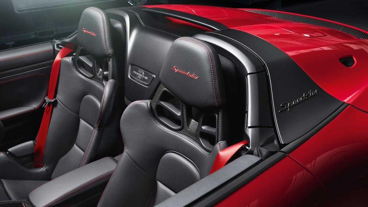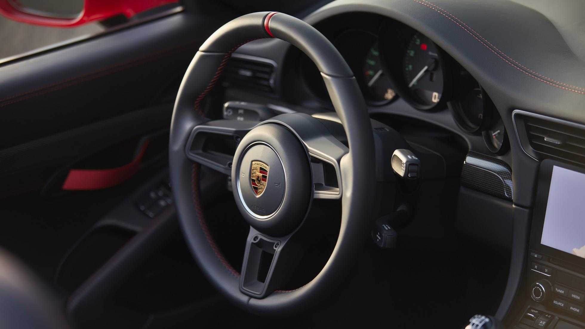 As expected from a limited-edition Porsche, there is hardly a lack of finer details even in a spartan interior. As an option, the standard black leather interior can be complemented with red stitching, as well as having the “Speedster” designation imprinted in the headrests. This option also includes red door straps and the GT Sport steering wheel with a red center marker. Many of the interior panels are made from carbon fiber.