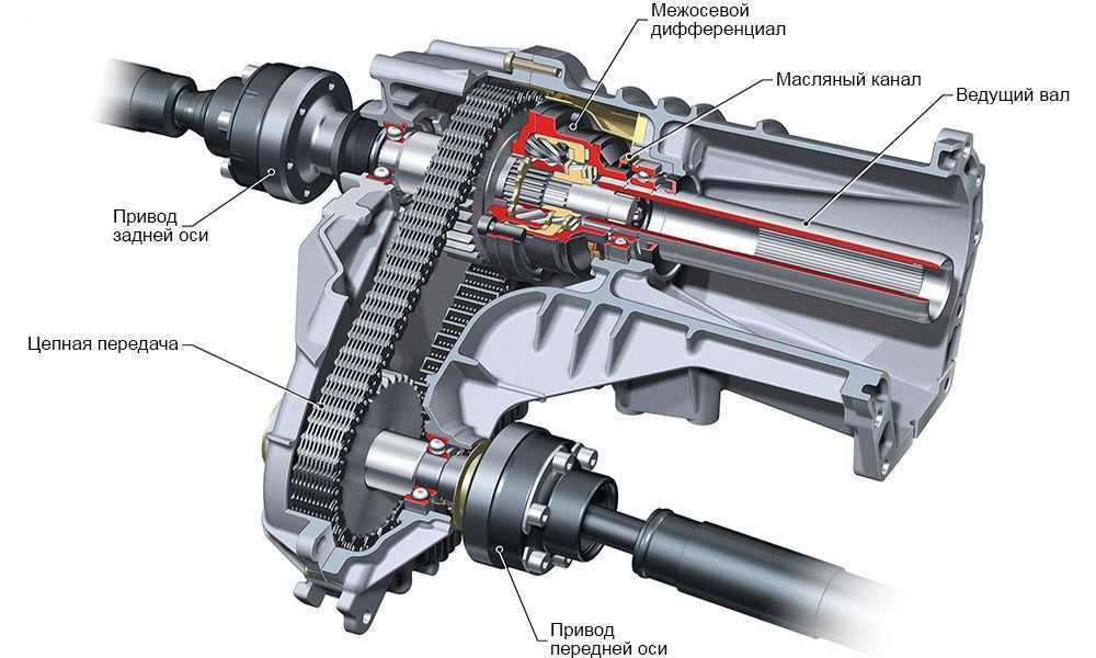 Устройство «раздатки» и принцип её работы довольно простой. Управлять ей может производить как водитель, так и автоматика. А межосевой дифференциал или муфта позволяет не допустить преждевременного износа деталей трансмиссии.