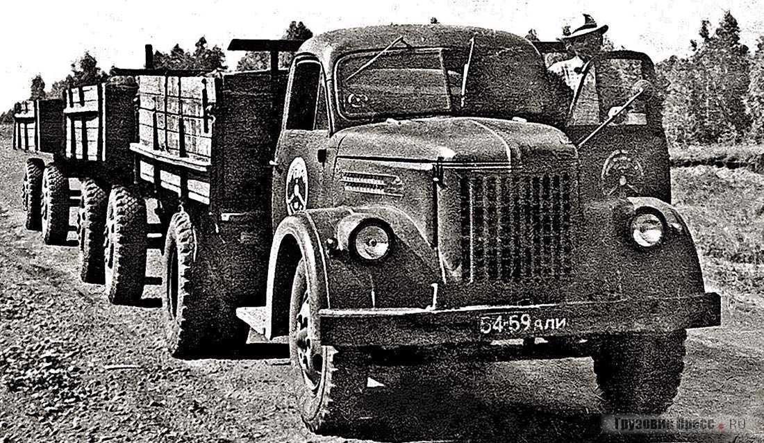 С наступлением мирной жизни многие поступившие по ленд-лизу модели с прицепами и полуприцепами стали использовать и в народном хозяйстве. Достаточно вспомнить седельные тягачи Studebaker US6 6х4 с полуприцепами Adwards, большегрузные Diamond и Mack с прицепами-трейлерами и др. Да и производство отечественного прицепного состава возобновилось и расширилось на Ждановском, Одесском и Московских заводах. К середине 1950-х применение прицепов и полуприцепов в автотранспорте стало вновь усиленно пропагандироваться, поскольку помимо нехватки грузовых автомобилей в стране наблюдался и дефицит шофёрских кадров, а эффективность использования имеющегося автопарка оставалась по-прежнему низкой. Так, по ряду сведений, в автохозяйствах общего пользования на каждые 100 автомобилей в 1955 г. насчитывалось всего по 5–7 прицепов и полуприцепов. В этот же период начато производство прицепов и полуприцепов в Бобруйске, Могилёве, Челябинске, Грабово, Калинине, Ташкенте. Ощутимым толчком к этому стало начавшееся в 1954 г. освоение целинных и залежных земель, потребовавшее мобилизации огромного количества автотранспорта и рекрутирования водительского состава для скорейшего вывоза урожая, поскольку дефицит элеваторов и хлебоприёмных пунктов в осваиваемых регионах заставлял транспортировать собранный хлеб за 150–200 и более километров в предельно сжатые сроки. Это объясняет, почему основная масса многоприцепных автопоездов появилась в 1950-е годы именно в области перевозок сельхозпродуктов.