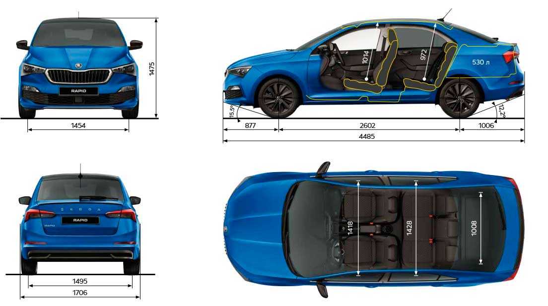 Здесь разработчики попытались создать улучшенную версию Skoda Rapid 2021. Начнем с общих параметров.