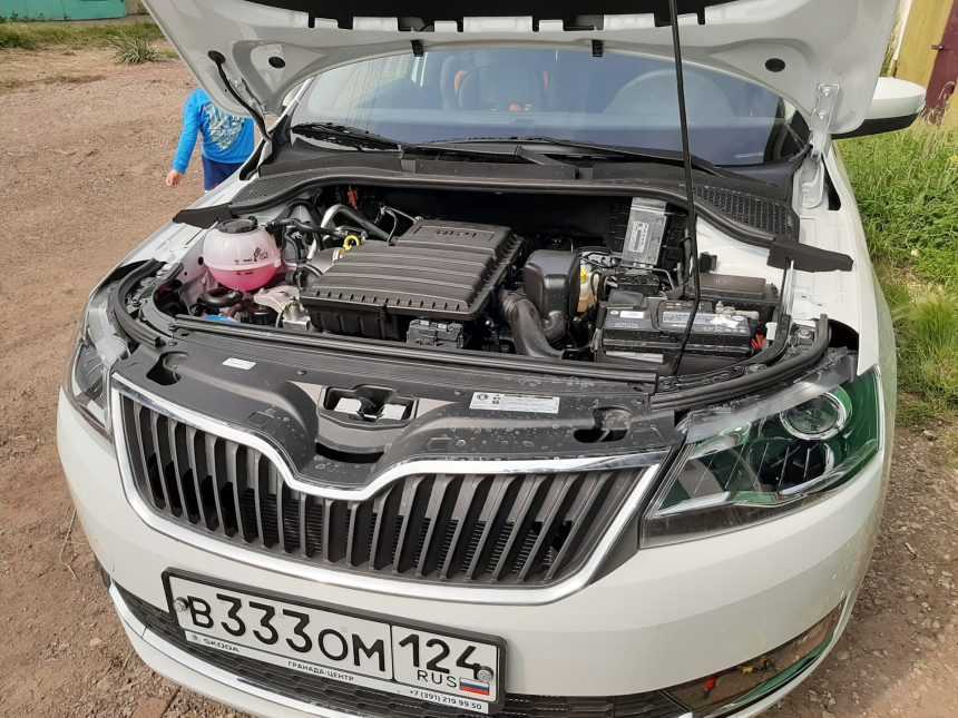 Агрегат оснащен гидрокоменсаторами клапанов и фазовращателем на впуске. Мотор 90 л.с. идет только на пяти ступенчатой механике, двигатель 110 л.с. на пяти ступенчатой механике или шести ступенчатом автомате. Машина которую мы брали на тест была оснащена мотором 1.6 л. 110 л.с., на автомате, именно в этой связке Rapid самый востребованный.