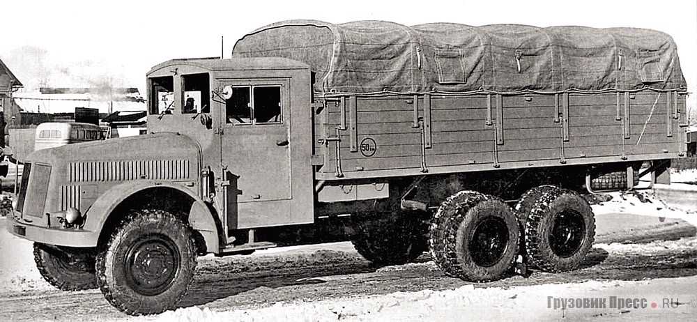 Необычным было и крепление двигателя: основой являлась дополнительная КП, а к ней крепились основная 4-ступенчатая КП вместе с двигателем, образуя единый жёсткий узел, на котором вдобавок держалась и передняя стенка деревометаллической кабины (!). Передний мост сделали отключаемым, дифференциалы задних ГП снабжались блокировками, тормозная система была пневматической.