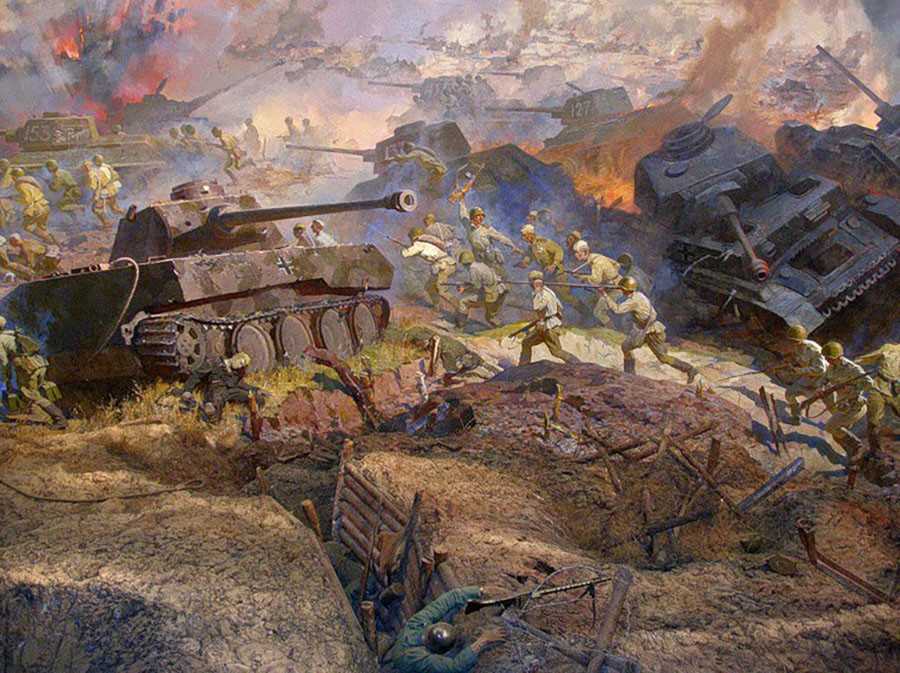 Самым масштабным танковым сражением за всю историю Второй мировой является Курская битва. В бою участвовали порядка 8 000 танков, территория битвы составляла 150х200 км., большую часть которой ранее занимали плодородные поля. Окружение и захват полумиллиона советских солдат в районе города Курск, было последним шансом переломить ход войны для немецкого командования. Обширная операция готовилась три месяца, под Курск стекались крупные силы фашистской армии: 780 тыс. человек, 10 000 орудий, 2 500 танков.