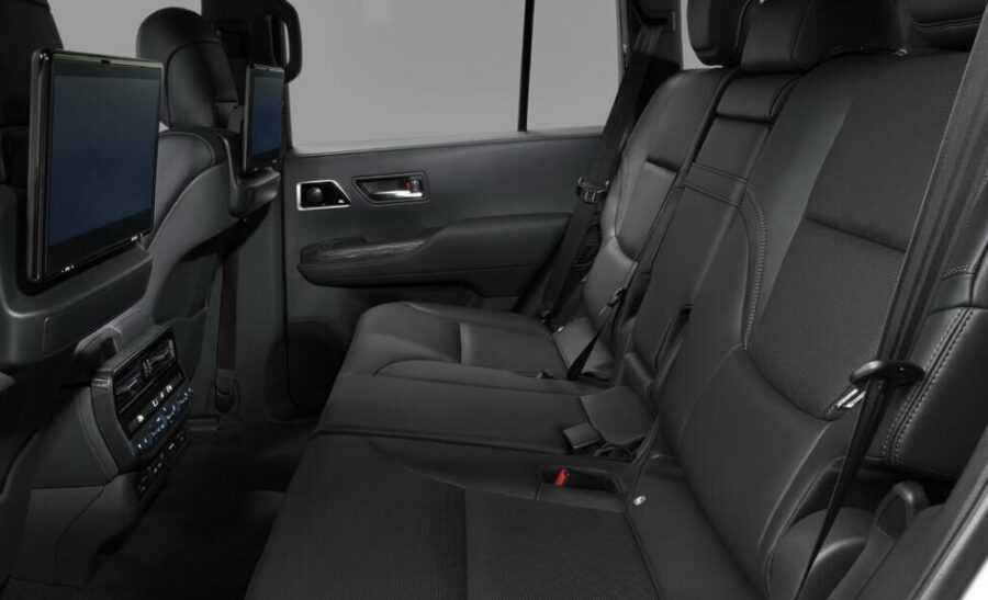 Внутри салона видим усовершенствованный руль, обновленную панель приборов с 4.2 дюйм. дисплеем, наиболее улучшенное оформление консоли по центру с 9 дюйм. сенсорным дисплеем мультимедиа системы и новейшим блоком управления климатом, переделанный напольный туннель со множеством клавиш управления с добавочными опциями авто и двумя шайбами, которые отвечают за координацию структуры полного привода. Внутри пространства хватает и самым высоким и плотным пассажирам. Салон обшит кожей и высококачественным пластиком. Более удобные сиденья для водителя и пассажиров, имеющие мультимедийные опции – в спинках передних кресел установлены 11.6 дюйм. экраны, показывающие картинку с DVD-установки, таким образом пассажиры приятно проведут время в пути.