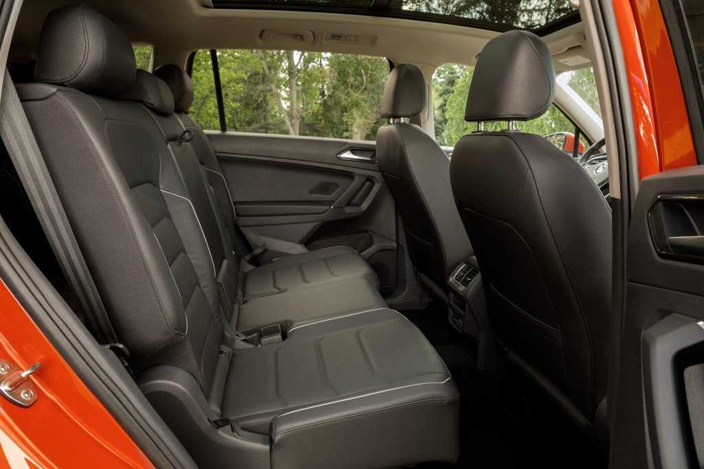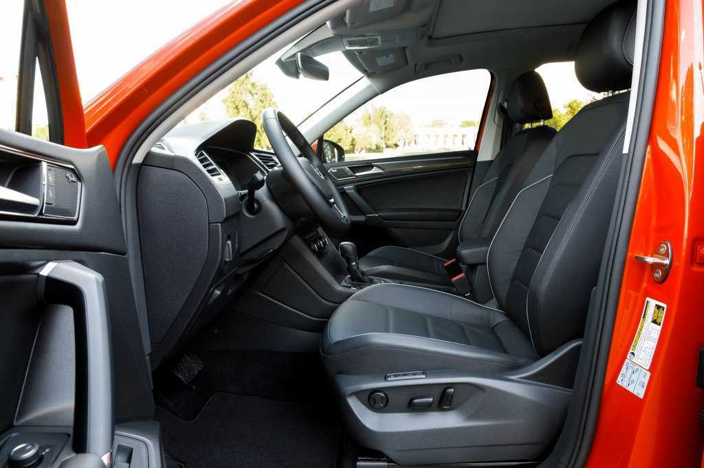 Передние сиденья обладают значительным количеством настроек и регулировок. Все кресла оснащены подголовниками и выступающими валиками боковой поддержки. Высокая посадка открывает достаточный уровень обзора из салона Фольксваген Тигуан. На заднем ряду достаточно места для троих взрослых пассажиров, а размер багажного отсека прекрасно подойдет для перевозки ручной клади.