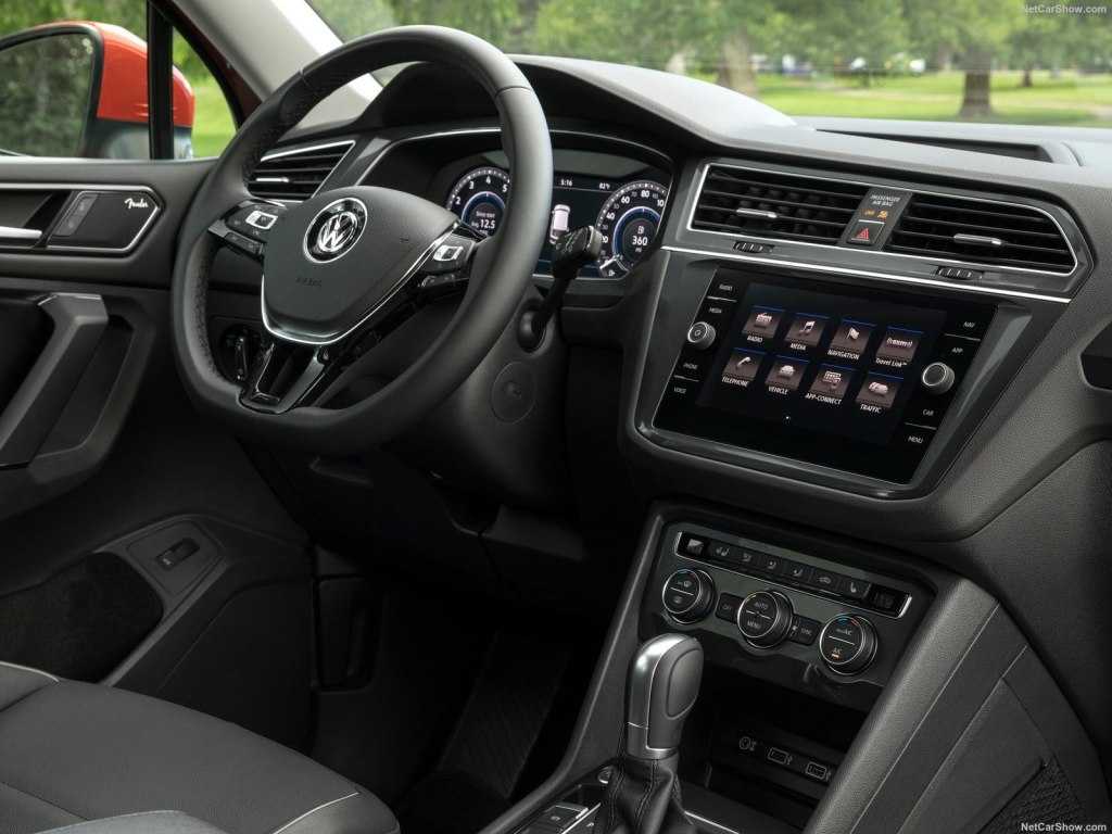 Салон Фольксваген Тигуан оснащен понятными элементами управления, и отмечается продуманным и качественным оформлением, которое присуще автомобилям Volkswagen. Кроме того, что все в салоне выглядит хорошо, вы почувствуете качество и на ощупь. На руле встроенные кнопки управления аудио и телефоном, которые характеризуются очень хорошими тактильными качествами. Также, премиальный уровень авто повышается за счет стандартного применения искусственной кожи в обивке салона. Вместе с тем, в качестве опции для этого 2-рядного 5-местного внедорожника доступна настоящая кожа. Функциональной новинкой 2021 стал долгожданный USB вход. Хотя багажник Tiguan гораздо меньше, чем в большинстве компактных внедорожников, но все имеющееся пространство кабины было очень разумно задействовано.