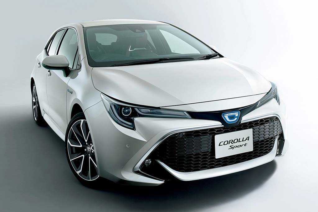 Отдельный шильдик японцы придумали для гибридных исполнений модели Тойота Королла. Он у таких машин выполнен в форме перевернутой трапеции и окрашен в синий цвет.