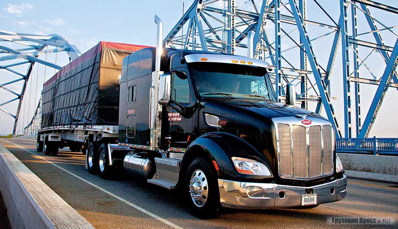 Появились и новые магистральные полстеллары с аэродинамическим дизайном. Причём впервые в префиксе модели компания применила цифру «5». Конструкция флагмана Peterbilt 587 сочетает последние новинки, кабина изготовлена из алюминия и композитных материалов.