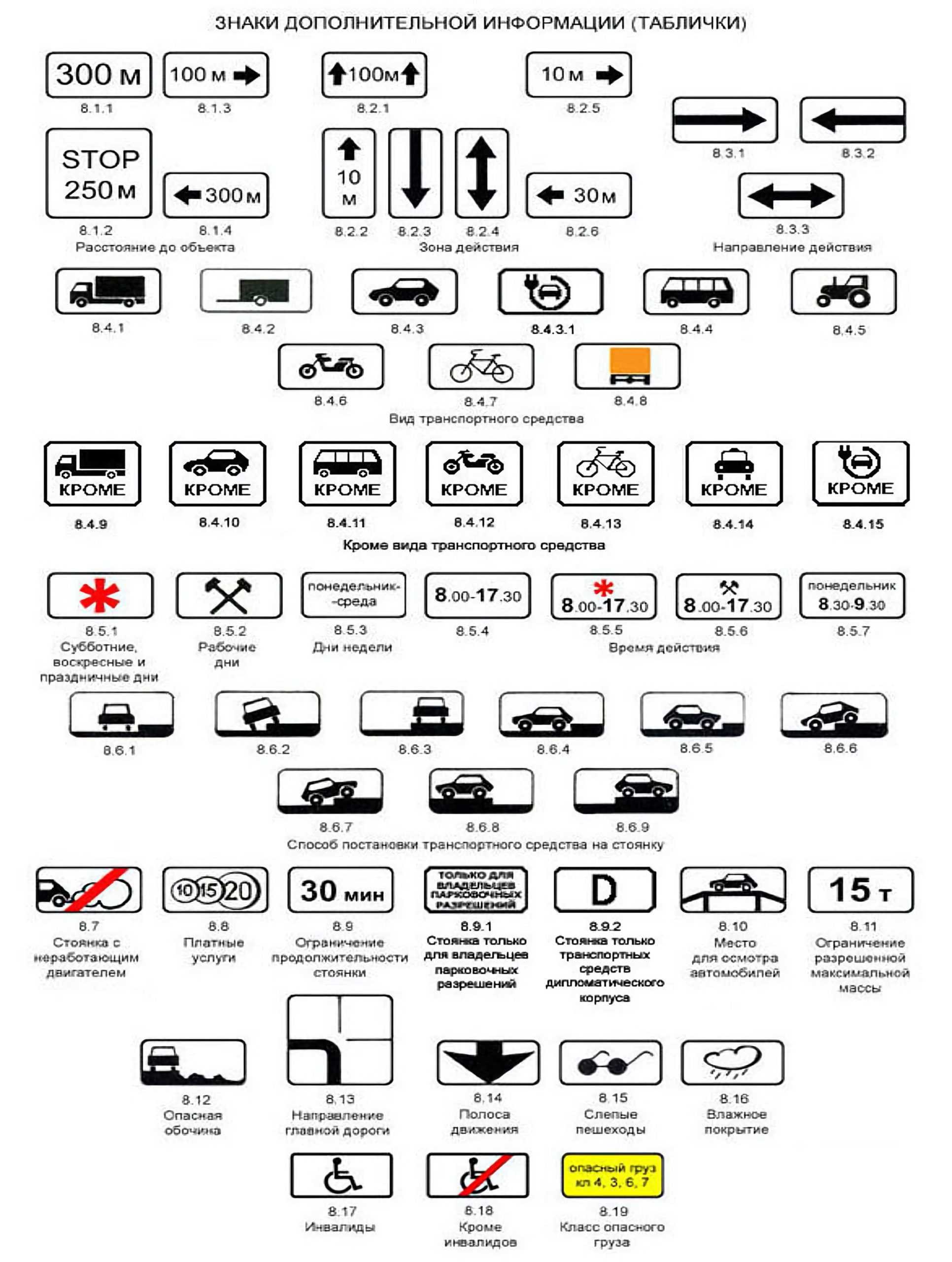 8. Знаки дополнительной информацией (таблички)