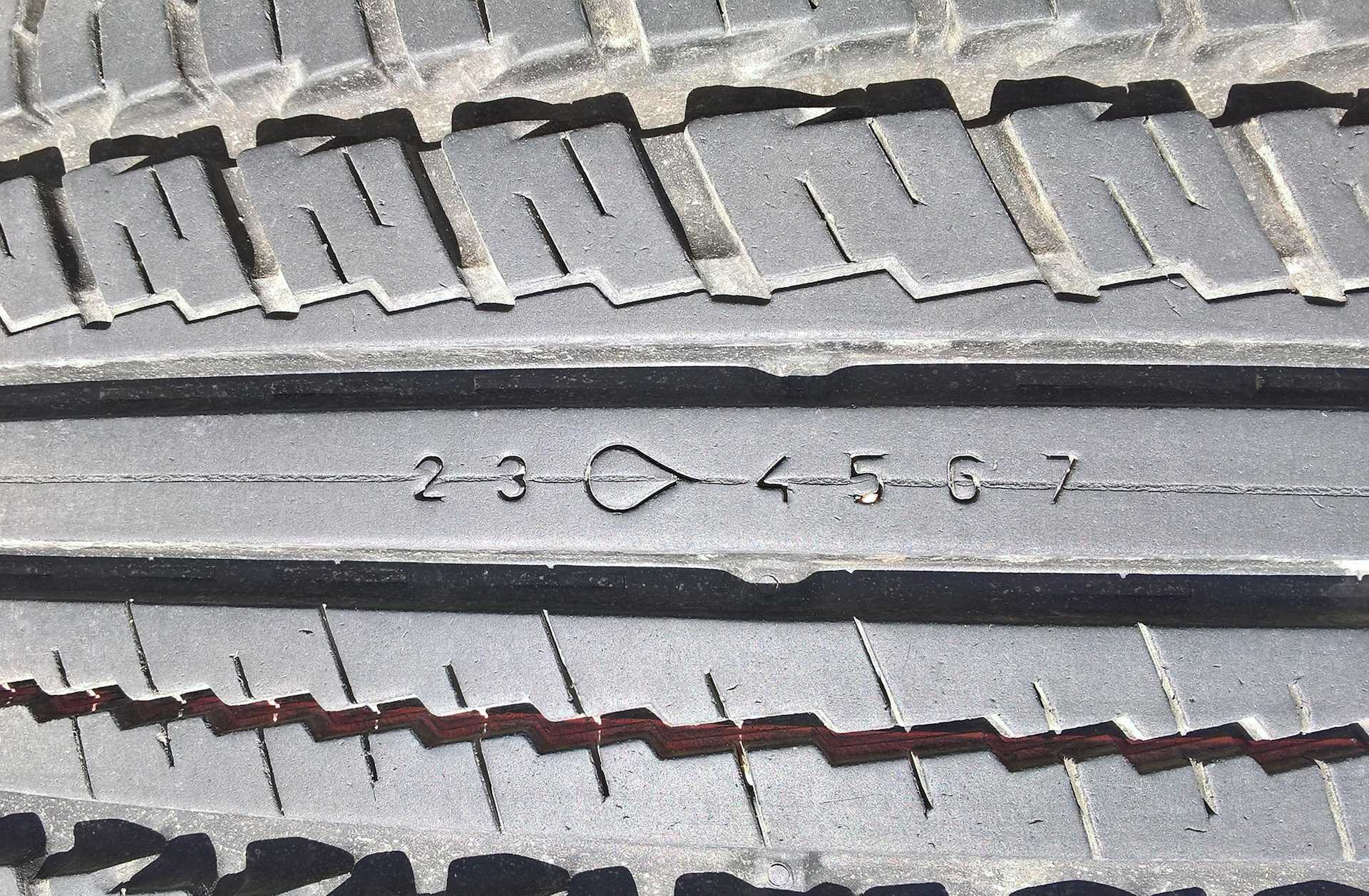 Дата изготовления шины указывается в виде четырех цифр заключенных в овал. Первые две цифры указывают на порядковый номер недели в году, следующие две цифры указывают на год изготовления. Например: на шине указаны цифры даты изготовления 0421, что расшифровывается как 4 неделя 2021 года.