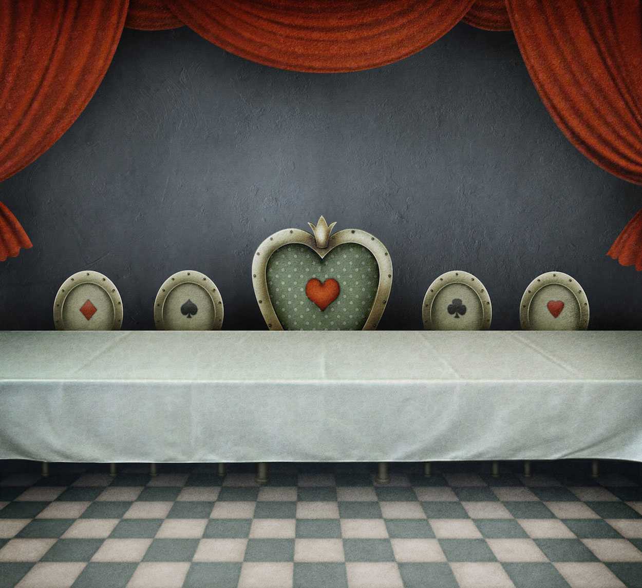 Потом начинается суд, во время которого королева требует всем рубить головы.