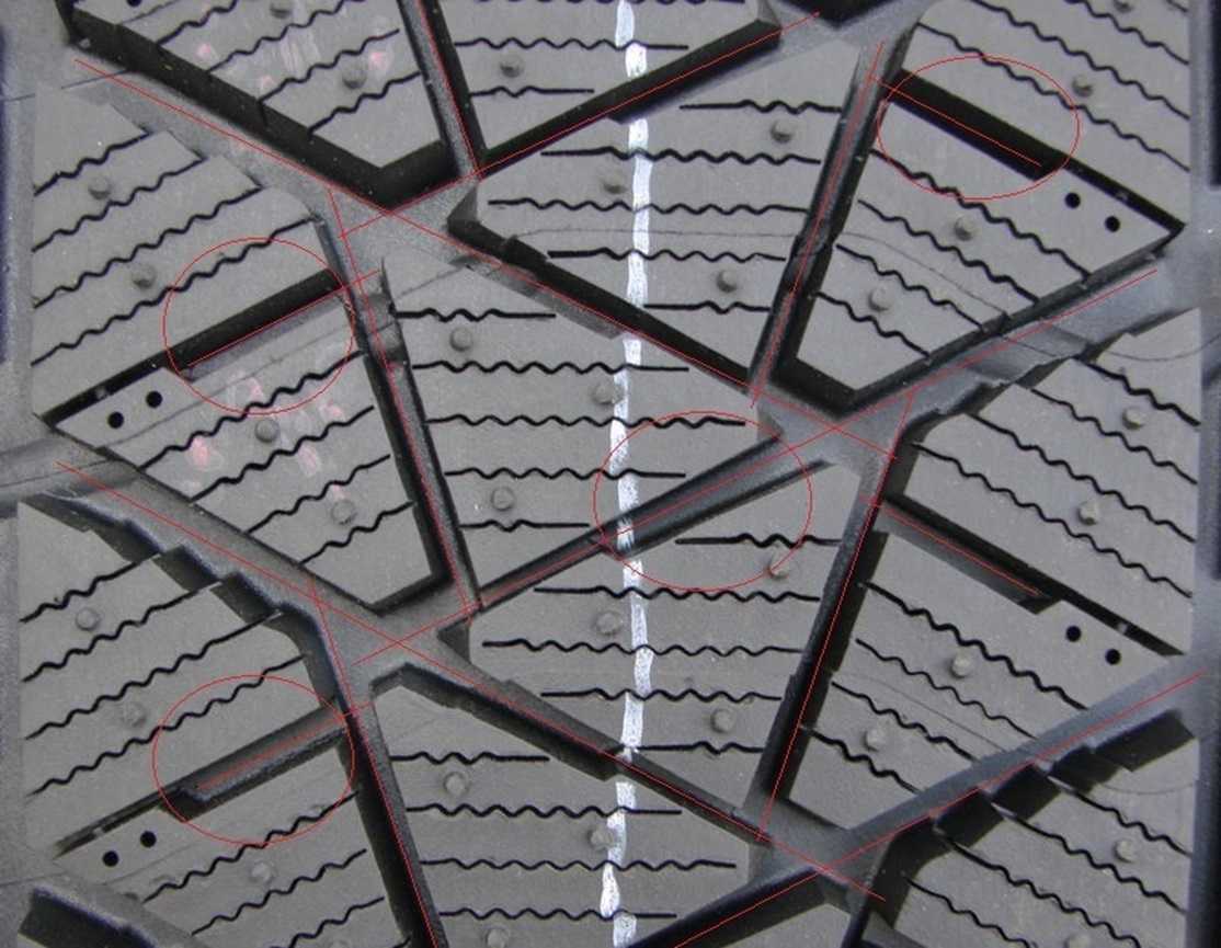 Надпись NWI или стрелки указывают на метки износа. Если их нет, то можно с уверенностью сказать, что это подделка. Для нанесения данной маркировки необходимо наличие высокоточного оборудования.