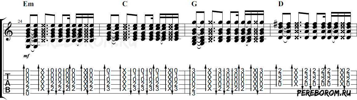 В этом разделе можно просто написать, вместо какого удара нужно приглушать струны, однако для расширения музыкального диапазона и лучшего понимания, почему эта система работает именно так, гораздо полезнее будет еще и объяснить, почему именно в этот момент гитару нужно глушить.