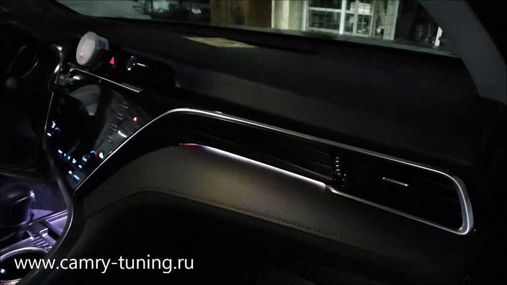 Салон можно оборудовать дополнительной неоновой подсветкой. Красивое свечение создает эффект дороговизны и роскоши. Для установки не требуется никаких переделок. Устройство подключается к штатному разъему и устанавливается в штатные крепления.